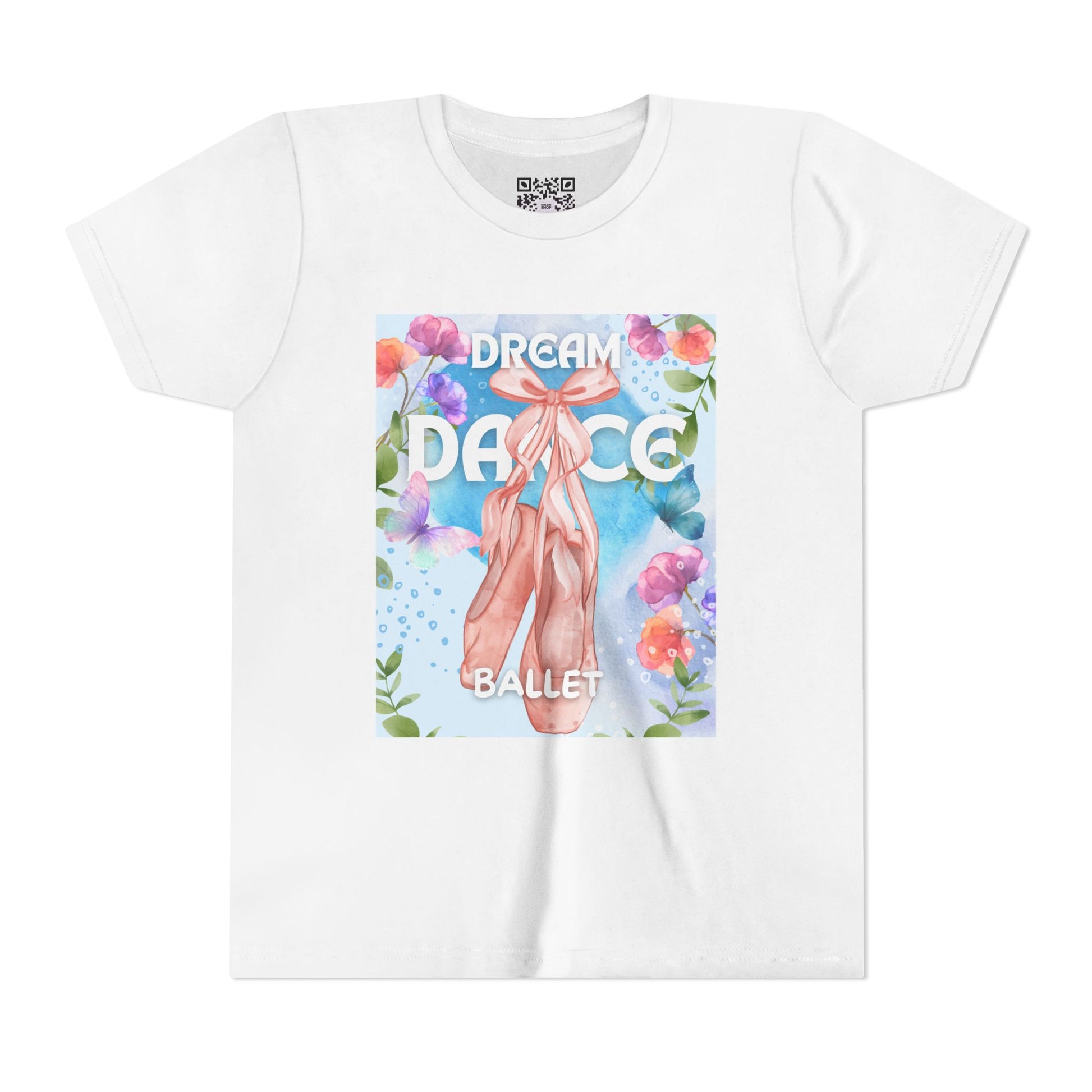 Soft as a breath between pirouettes, this youth tee carries a gentle floral-and-butterfly illustration made for dancers who move with quiet grace. Lightweight, breathable cotton drapes easily over leotards or everyday play clothes, letting tiny arms lift and twirl without tug or restriction. The print sits thoughtfully across the chest, a small moment of charm that nods to ballet recitals, after-class snacks, and afternoons spent practicing at home. Parents will appreciate the tear-away label and stable construction—side seams and shoulder tape mean the shirt keeps its shape through washes and rehearsals. It’s an uncomplicated, sweet piece that feels personal and tender—like a soft exhale after the final bow.
